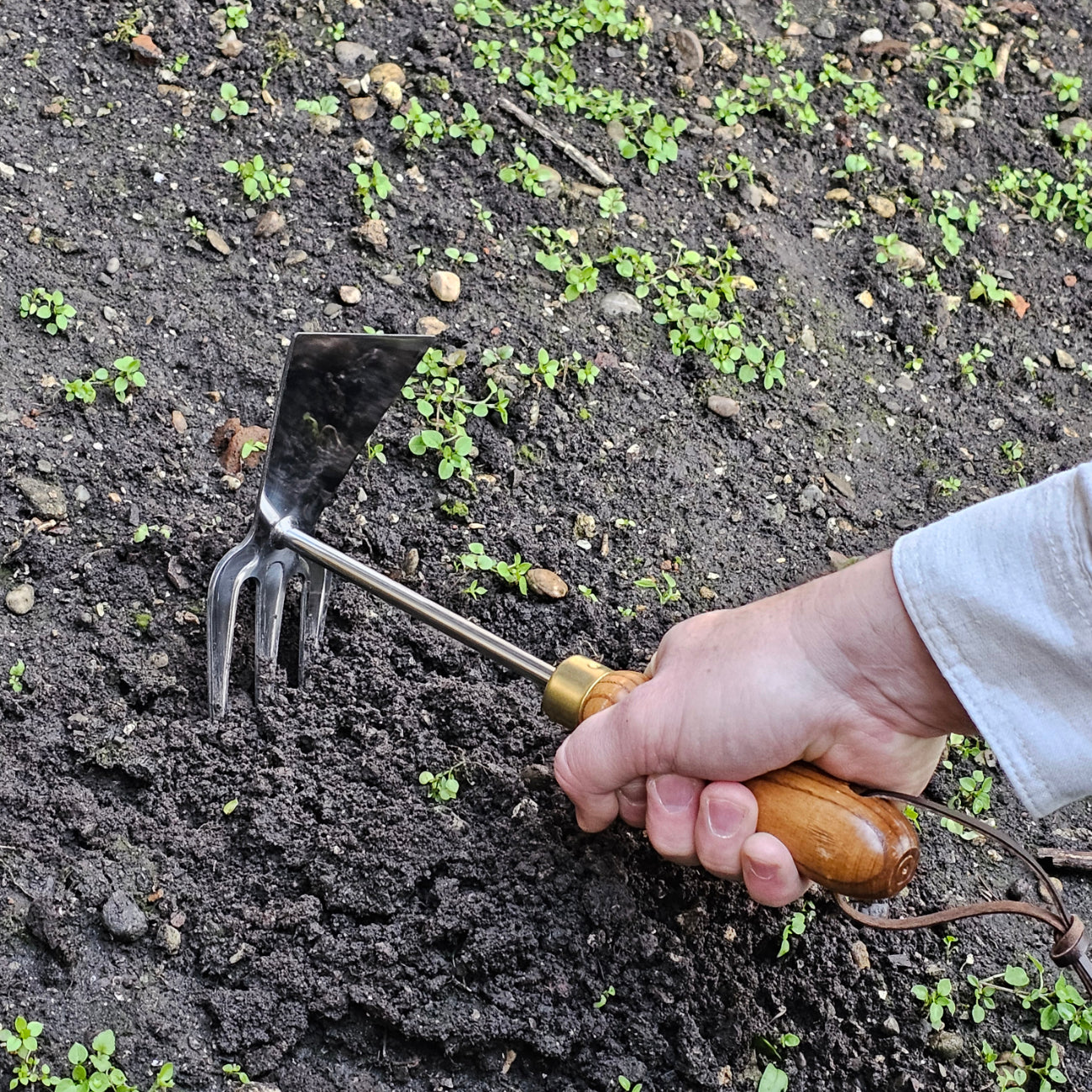 Mit der 2-in-1 Handhacke hast Du gleich zwei praktische Gartenwerkzeuge in einem! Ob Du den Boden auflockern, hacken oder störendes Unkraut entfernen willst – dieses Edelstahl-Werkzeug ist der perfekte Begleiter im Garten. Dank der robusten Verarbeitung eignet es sich für Blumen- und Gemüsebeete, Hochbeete oder große Pflanzgefäße. Praktisch, handlich und langlebig – damit macht die Gartenarbeit einfach Spaß! Geeignet für lockere, kultivierte Böden.