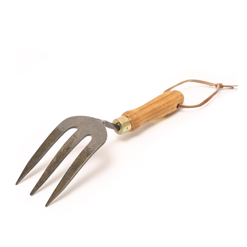 Mit der geschmiedeten Handgabel kannst Du Dich voll und ganz Deiner Gartenarbeit widmen. Die robusten Zinken sind ideal, um Böden zu belüften, aufzulockern oder Unkraut zu jäten – selbst wenn die Erde mal etwas härter ist. Der Eschenholzgriff liegt stabil und angenehm in Deiner Hand und sorgt dafür, dass jede Bewegung sitzt. Nach getaner Arbeit hängt die Gabel an der praktischen Lederschlaufe und wartet geduldig auf ihren nächsten Einsatz.