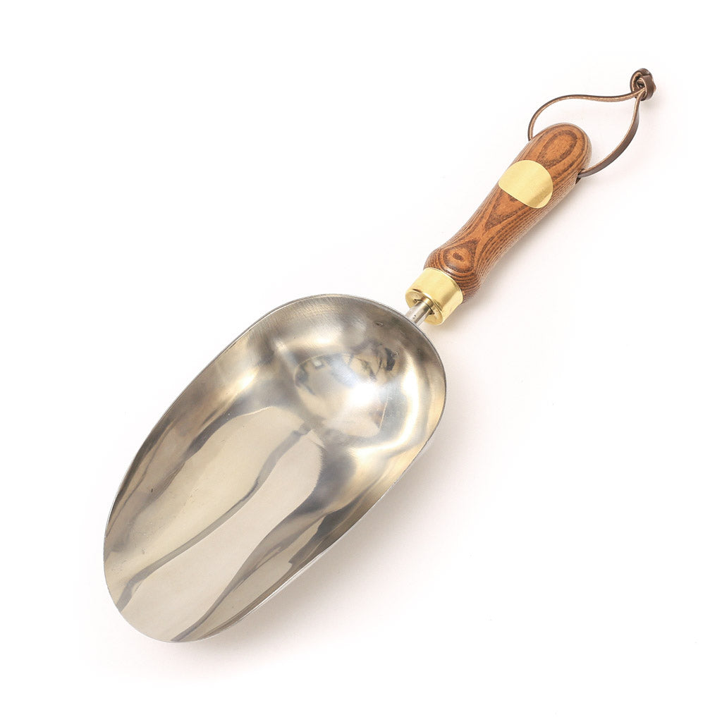 Mit der Kompostschaufel aus Edelstahl kannst Du ganz leicht auch größere Mengen an Kompost oder Pflanzenerde in Gefäße füllen. Dies ermöglicht schnelles und sauberes Arbeiten beim Pflanzen und Umtopfen. Durch die hohen Ränder und das große Fassungsvermögen kannst Du mit einem Hub mehr Kompost transportieren als mit normalen Handschaufeln. Der komfortable Griff aus Eschenholz sorgt dabei für eine angenehme Handhabung. Praktisch, effizient und langlebig – die ideale Ergänzung für Deine Gartenausrüstung!