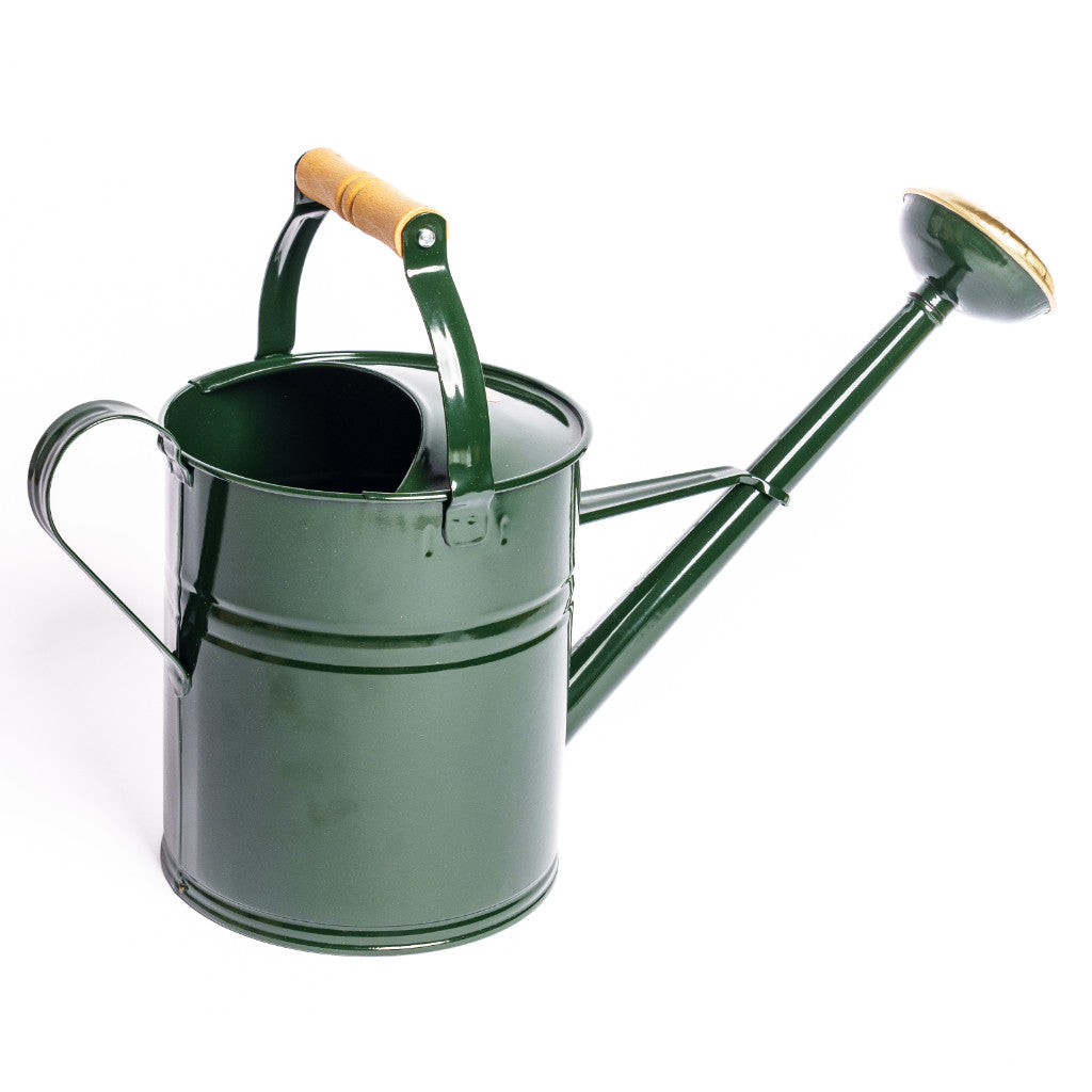 Du möchtest eine Metallgießkanne, die nicht allzu schwer im Gewicht ist? Dann ist diese Gießkanne aus elektroverzinktem Stahlblech vielleicht genau das Richtige für Dich! Mit einem Fassungsvermögen von 5 Litern Wasser hast Du mit dieser Kanne eine sinnvolle Größe, um Deine Balkonblumen zu wässern oder Deine Gemüsepflanzen im kleinen Gartenbeet mit Wasser zu versorgen. Der glänzende Goldton des Messingteils der Brause verändert sich aufgrund der Luftfeuchtigkeit und dem Kontakt mit Wasser auf ganz natürliche Weise und bekommt mit der Zeit eine warme Patina, was der Brause einen rustikalen Charme verleiht.