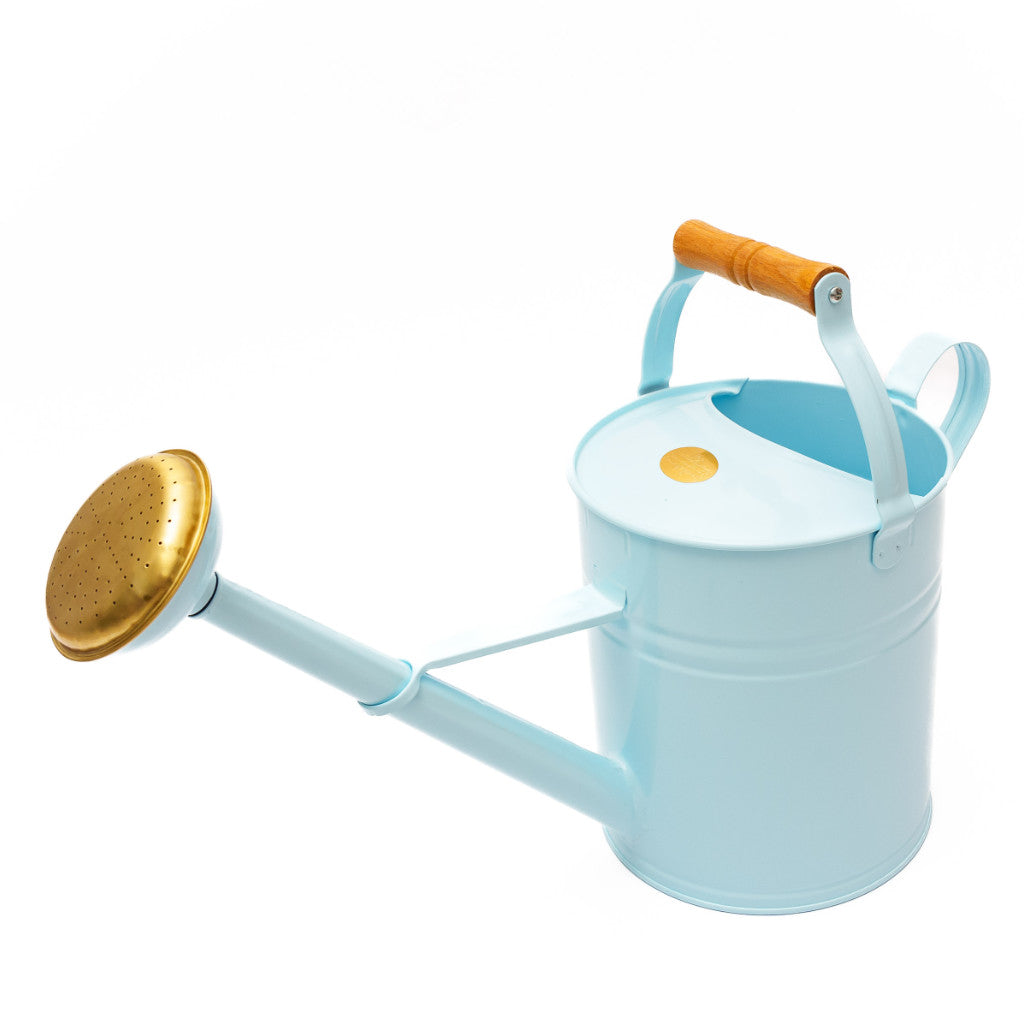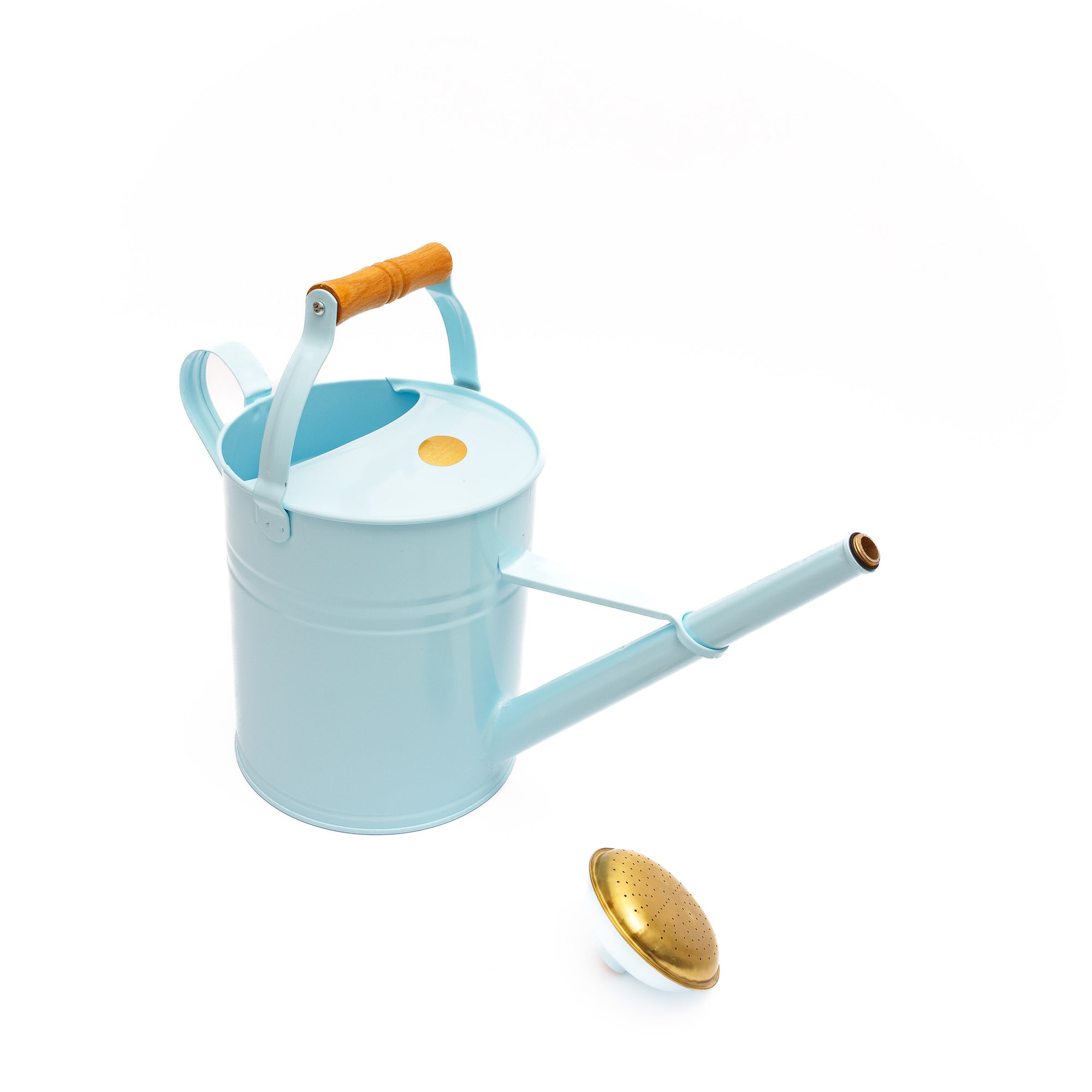 Du möchtest eine Metallgießkanne, die nicht allzu schwer im Gewicht ist? Dann ist diese Gießkanne aus elektroverzinktem Stahlblech vielleicht genau das Richtige für Dich! Mit einem Fassungsvermögen von 5 Litern Wasser hast Du mit dieser Kanne eine sinnvolle Größe, um Deine Balkonblumen zu wässern oder Deine Gemüsepflanzen im kleinen Gartenbeet mit Wasser zu versorgen. Der glänzende Goldton des Messingteils der Brause verändert sich aufgrund der Luftfeuchtigkeit und dem Kontakt mit Wasser auf ganz natürliche Weise und bekommt mit der Zeit eine warme Patina, was der Brause einen rustikalen Charme verleiht.